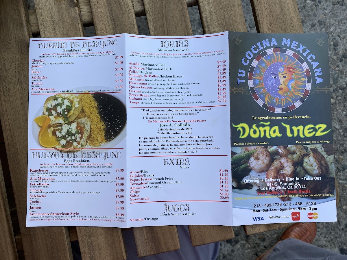 Welcome to Dona Inez Restaurant, a hidden gem located at 847 Santee St, Los Angeles. This inviting eatery offers a vibrant menu brimming with authentic Mexican flavors that cater to any palate. Start your culinary journey with delightful burritos, including the savory Asada or the flavorsome Pollo, topped off with fries, avocado, and cheese for a truly satisfying experience.